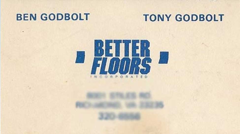 Terry’s younger brothers Tony and Ben Godbolt worked at Quality Tile when Tony had just graduated from high school in 1975 and Ben had recently returned from serving in the army as an E4 engineer. Ben attended a 3-year apprenticeship program that the military (VA) paid for while he worked at Quality Tile. After completion, the State of Virginia issued Ben a diploma for flooring.